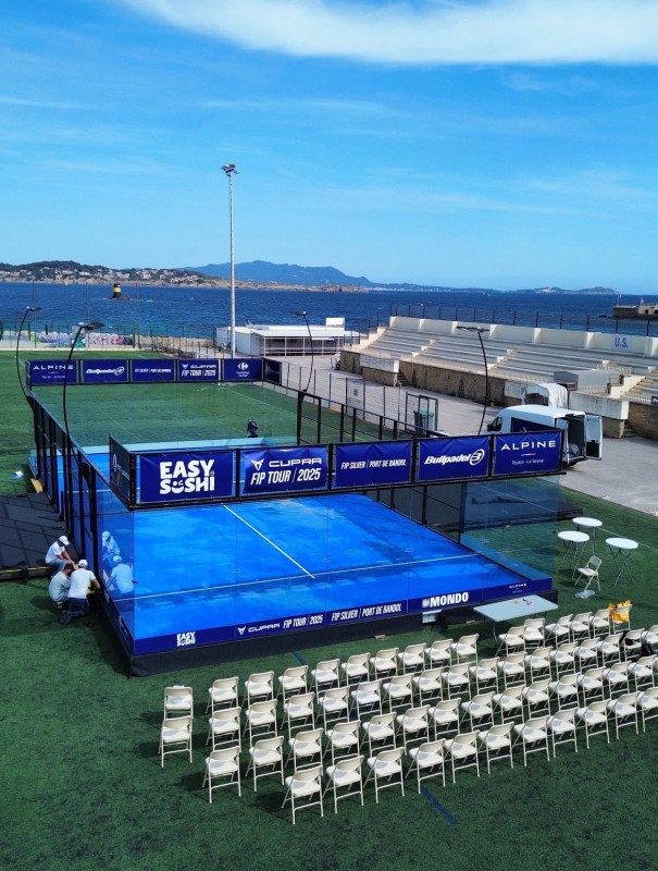 Mise en place d’un terrain de Padel éphémère pour l’événement FIP Silver sur la commune de bandol dans le Var.