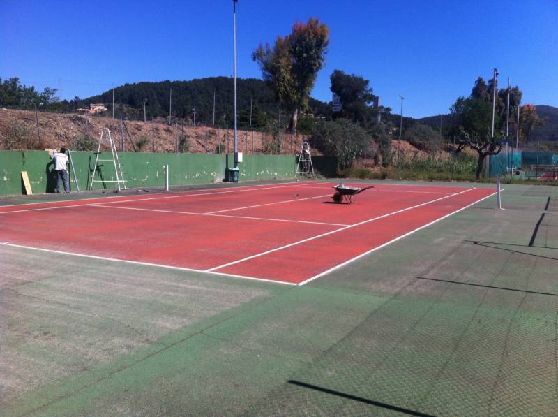 Après les travaux préparatoires suivant sur les terrains de tennis en place : ponçage des dénivelés, décrassage du support, reprise des fissures, application d'une résine de consolidation et une mise en peinture, les terrains ont retrouvé leur éclat. Les terrains de tennis de ce client ont repris de la couleur pour le plus grand bonheur des adhérents du tennis club de Solliès-Pont dans le Var.