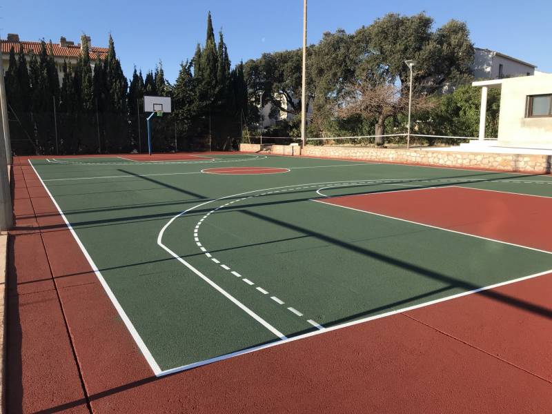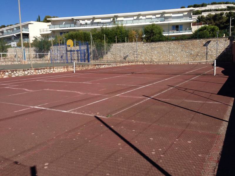 Dans la commune de Bandol située dans le Var les équipes d'AZUR TENNIS ont remis en peinture plusieurs plateaux multi-activités en béton poreux. Les différentes étapes ont consisté à poncer les décalages entre les sections de manière à mettre en sécurité les terrains. Ensuite nous avons nettoyé l'ensemble des terrains au nettoyeur haute pression (DHP pour Décrassage Haute Pression). Cette phase réalisée nous avons rebouché les fissures et les trous avec un liant résine + silice et nous avons également rebouché les joints de dilatation. Différents tracés ont été matérialisés au sol, tracés pour un court de Tennis, tracés pour un terrain de Volley et tracés pour un terrain de Basket. Si vous souhaitez réhabiliter vos terrains dans le sud de la France et redonner un coup de "jeune" à vos plateaux sportifs les équipes d'AZUR TENNIS sont à votre disposition pour étudier votre projet.